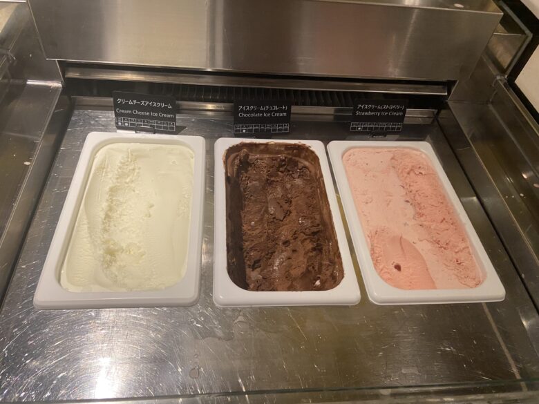 時間帯によってショーケースに並ぶスイーツは異なっていました。