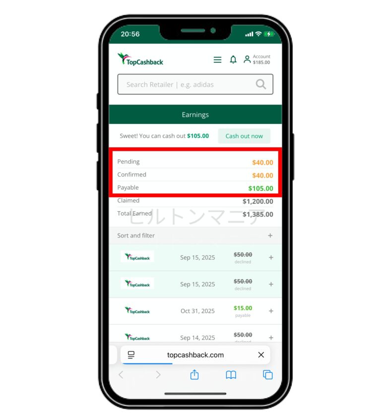 TopCashbackはキャッシュバックのステータス(保留中→確定→支払い済み)がリアルタイムで確認でき、この透明性は正直、日本の一部のポイントサイトよりも優れていると感じました。