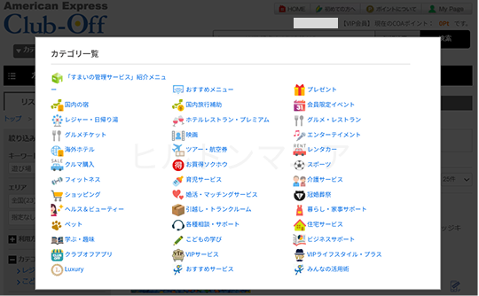 そこで今回私が実際に、アメックスクラブオフの会員サイトにログインの上、調査した結果を共有します。