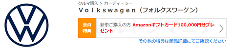 たとえば、フォルクスワーゲンでは、新車の購入でAmazonギフトカード10万円分が貰えます。