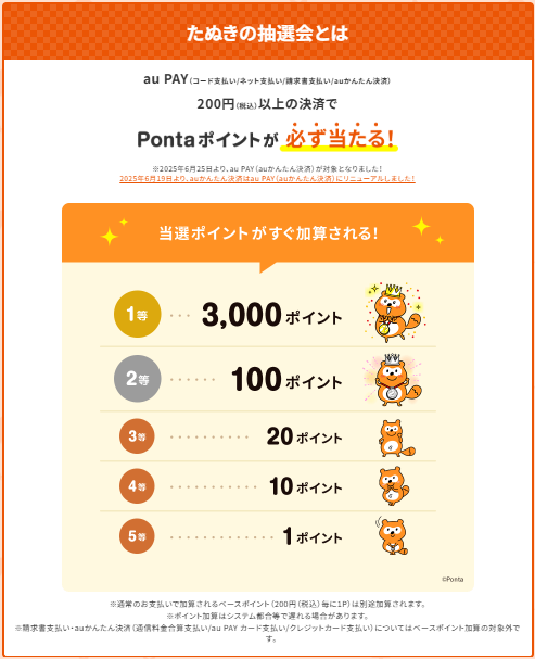ポイント還元廃止の代わりに導入されたのが「たぬきの抽選会」という仕組みです。