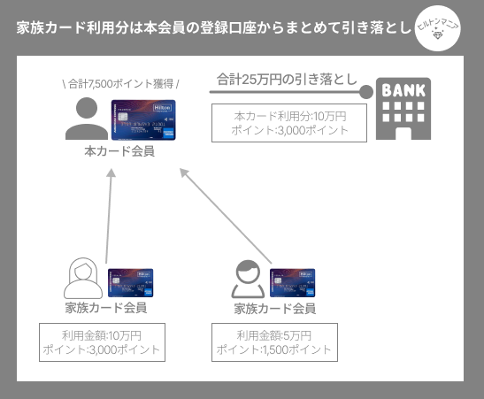 さらに、家族カード利用分のポイントも基本カード会員に合算されて計上されるため、ポイントが貯まる速度も早まります。