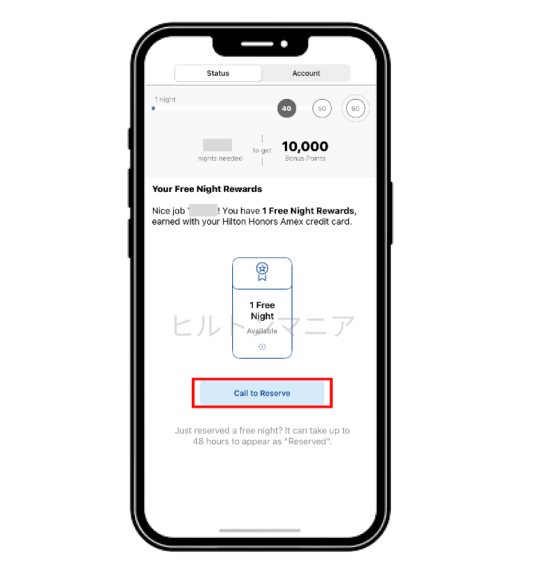 ヒルトン公式アプリで「ポイントで予約」の在庫状況を確認すると、無料宿泊特典の利用可否の目安になります。