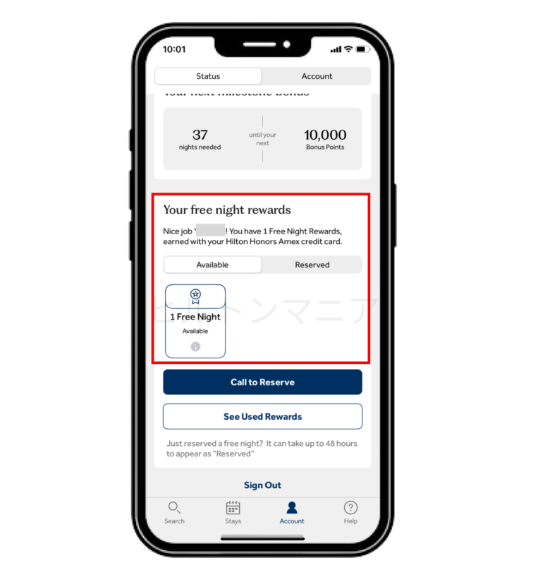 明確な有効期限は、ヒルトンオナーズ公式アプリ「Account」から確認が可能です。