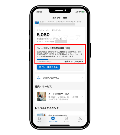 ヒルトンアメックス無料宿泊特典達成状況の確認方法