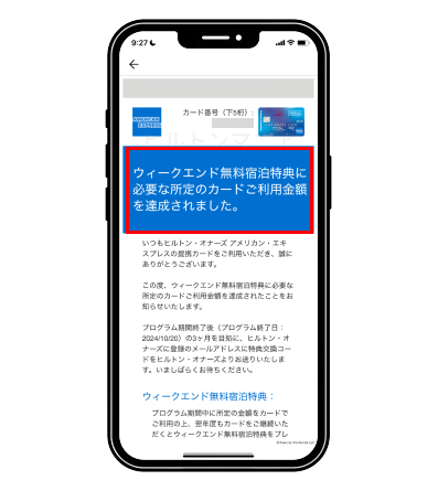 ヒルトンアメックスの無料宿泊特典メールがこないとき