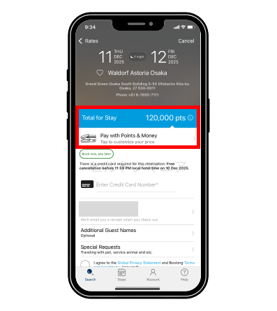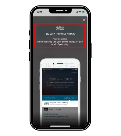 具体的には、ヒルトンポイント宿泊時に自身の保有するポイントの内、任意のポイント数のみを使用して、残りはクレジットカードや現金払いなどが可能です。